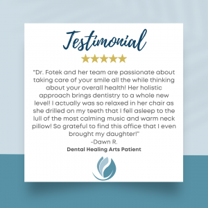 - GO TO DR. FOTEK AT DENTAL HEALING ARTS IN JUPITER, FL!We would be remiss if we didn’t mention here that Dr. Ilona Fotek is especially wonderful at handling patients who suffer from dental anxiety. Her practice, Dental Healing Arts, welcomes you the moment you step in the calm and clean office. We go the extra mile to make our patients comfortable and relaxed and offer a variety of solutions to help you feel stress-free during your visit. Most of our patients leave glowing reviews and many even fall asleep during their treatments! We would love the opportunity to help you work through your fears of dental visits! Additionally, Dr. Fotek is a holistic dentist that treats you with a whole-body wellness approach- and that includes your mental state and overall comfort.