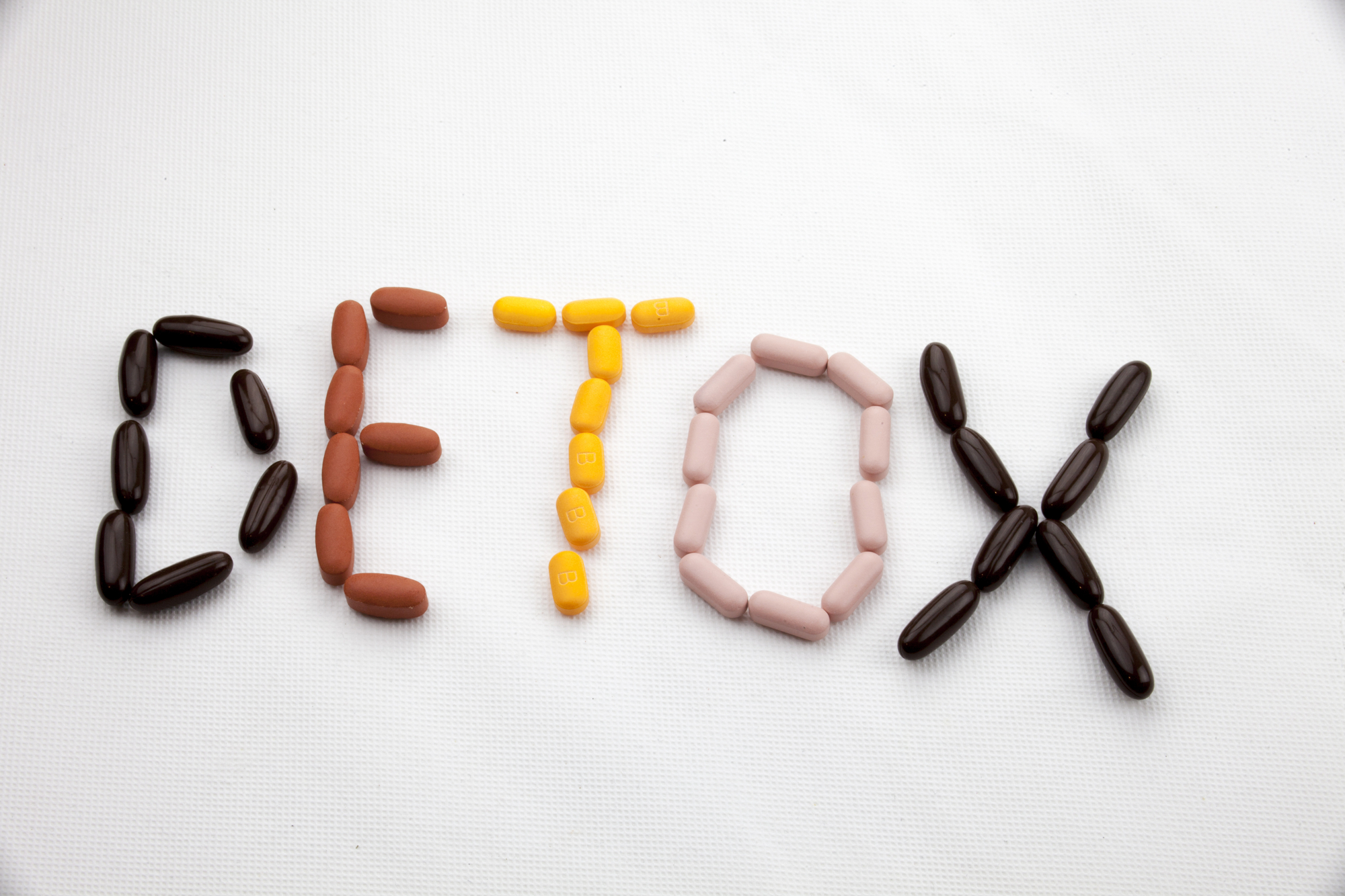 Conceptual Hand writing text caption inspiration Medical care Health concept written with pills drugs capsule word detox On white isolated background with space[/caption]